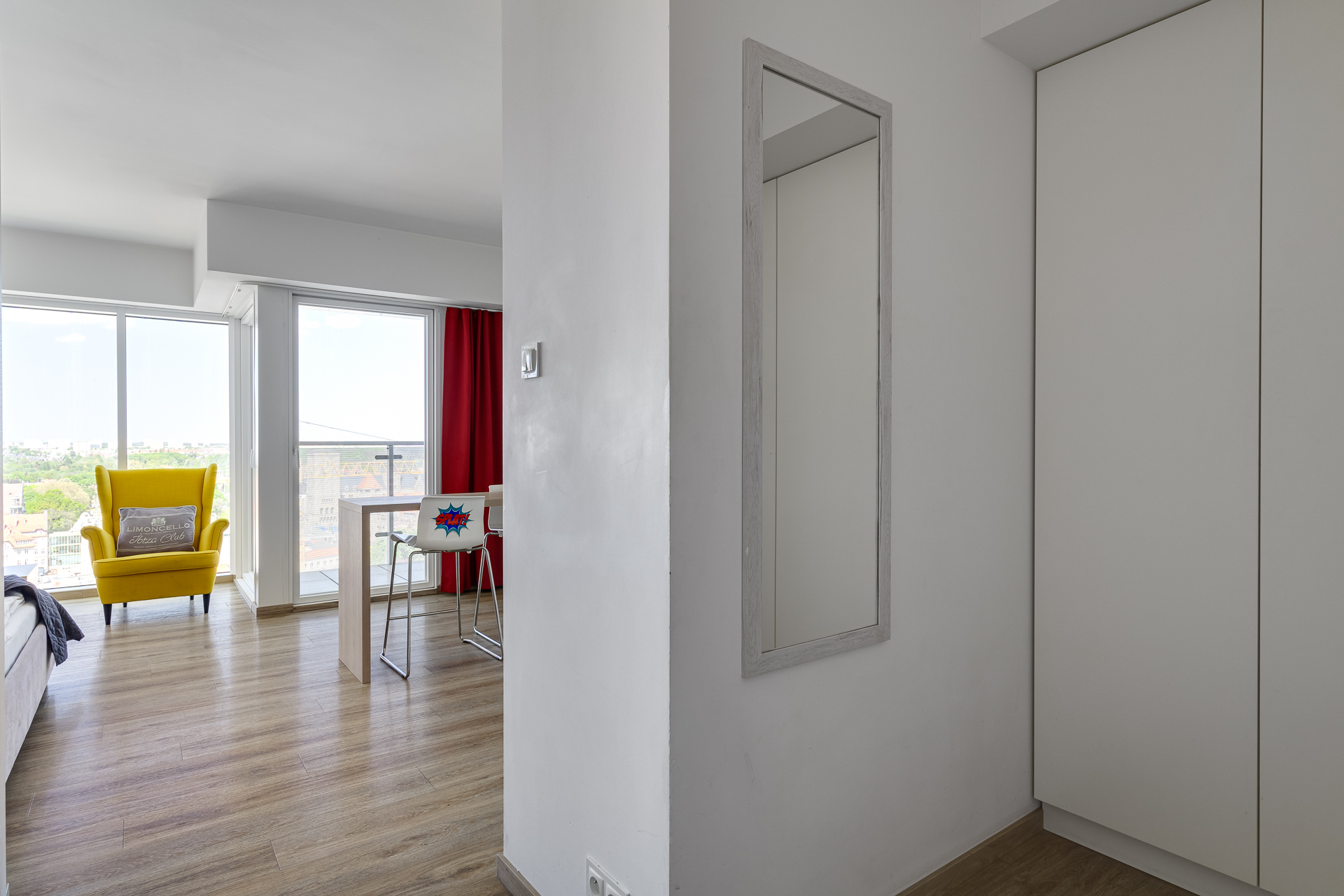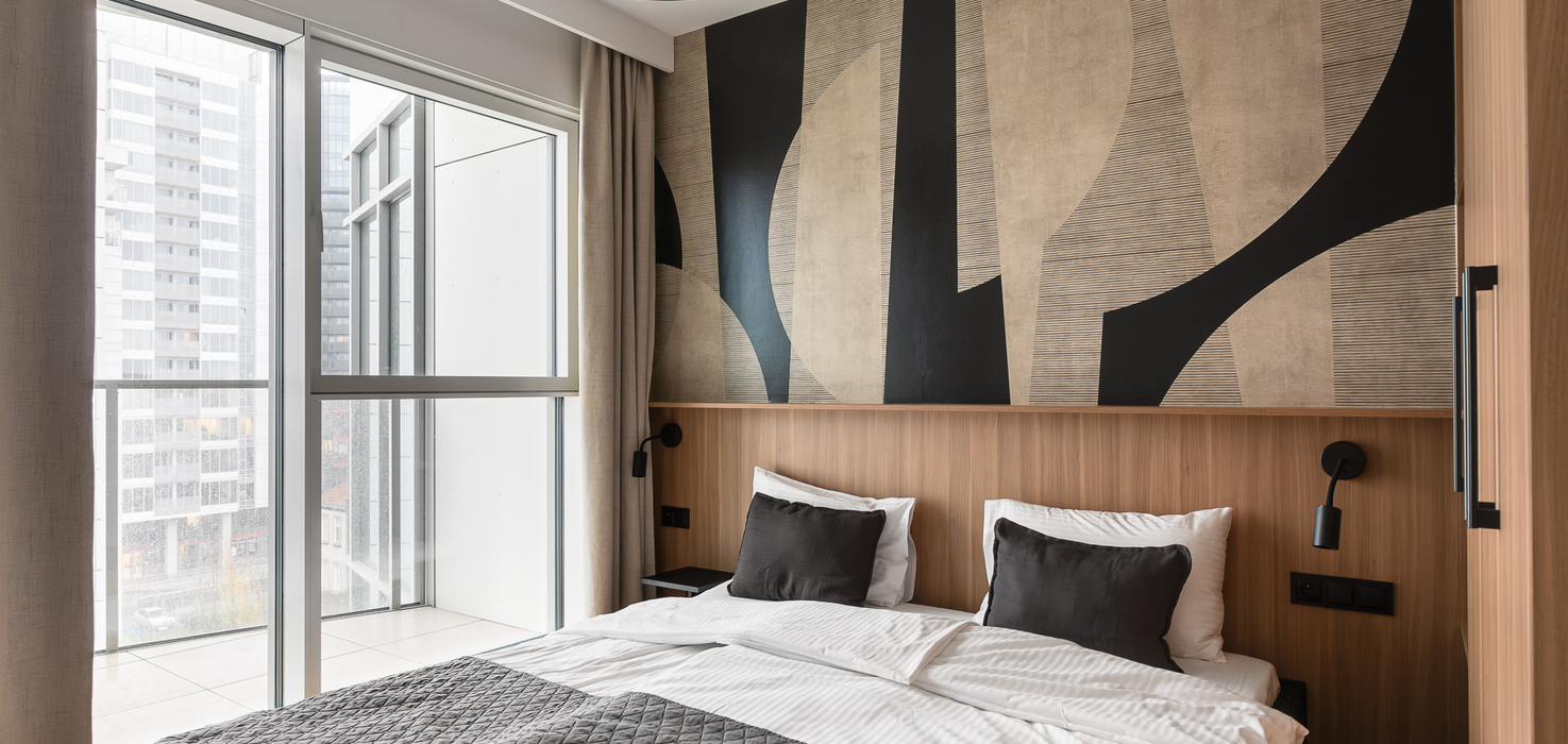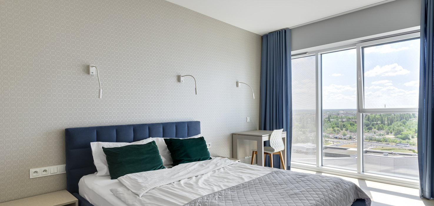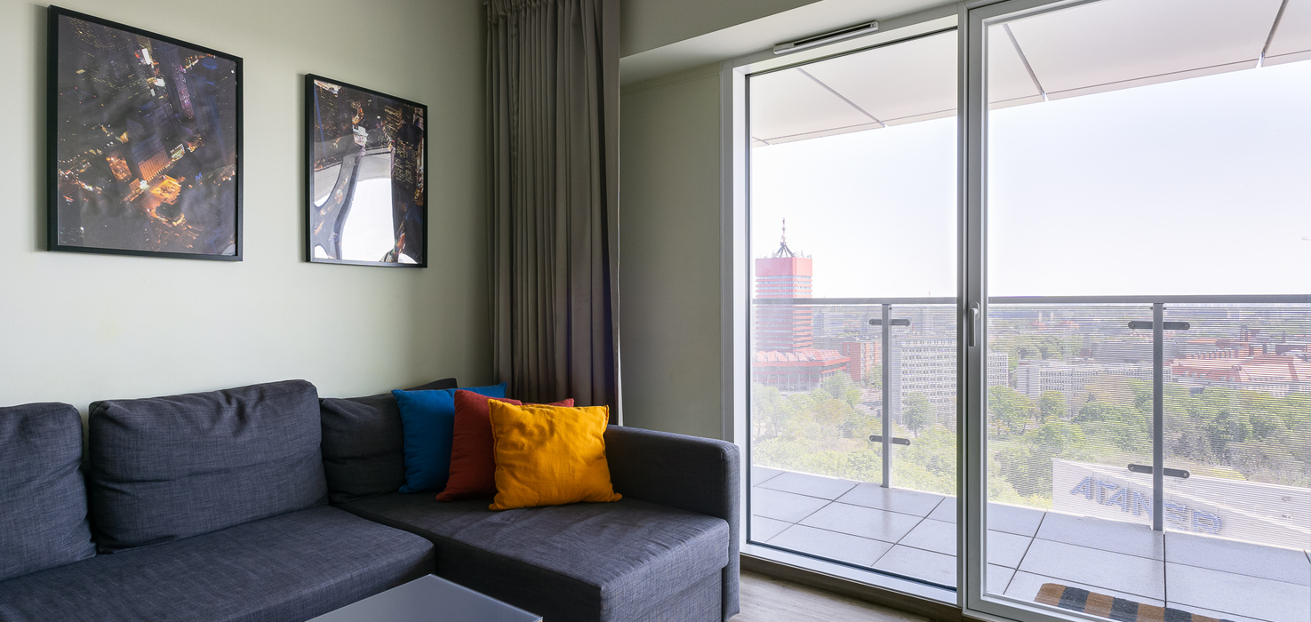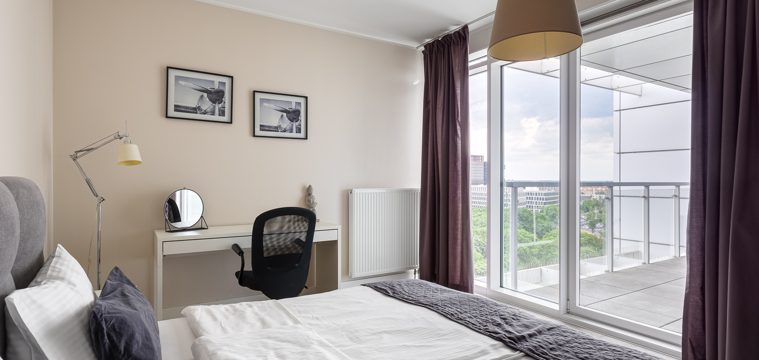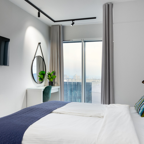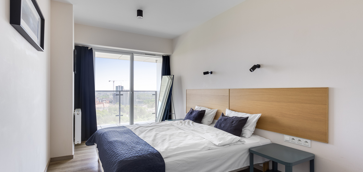 E - 1 BEDROOM view apartments (from 17th to 21st floor, without balcony, with air conditioning)