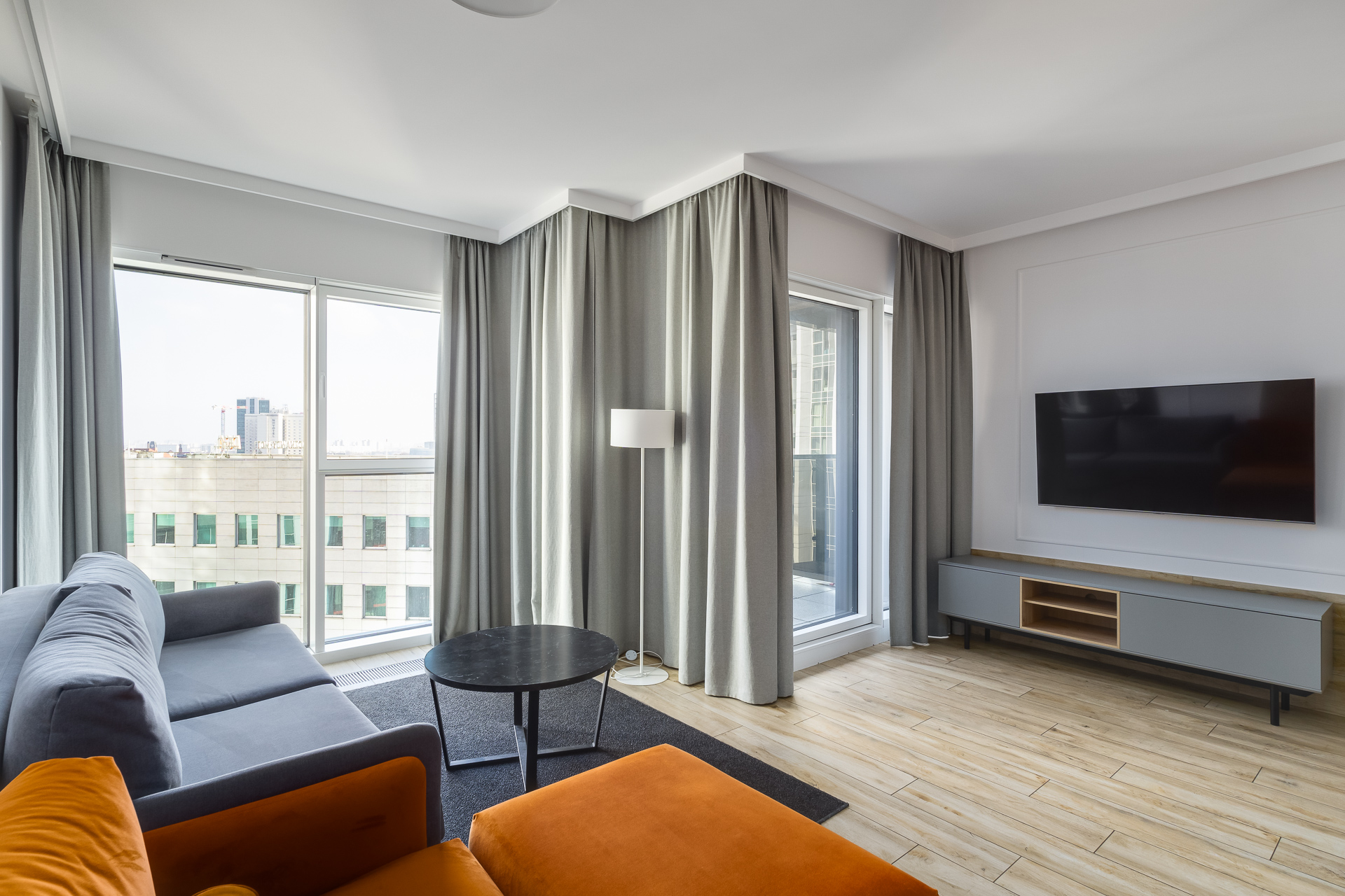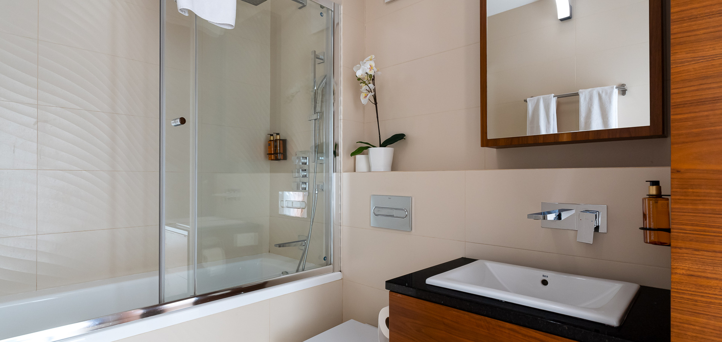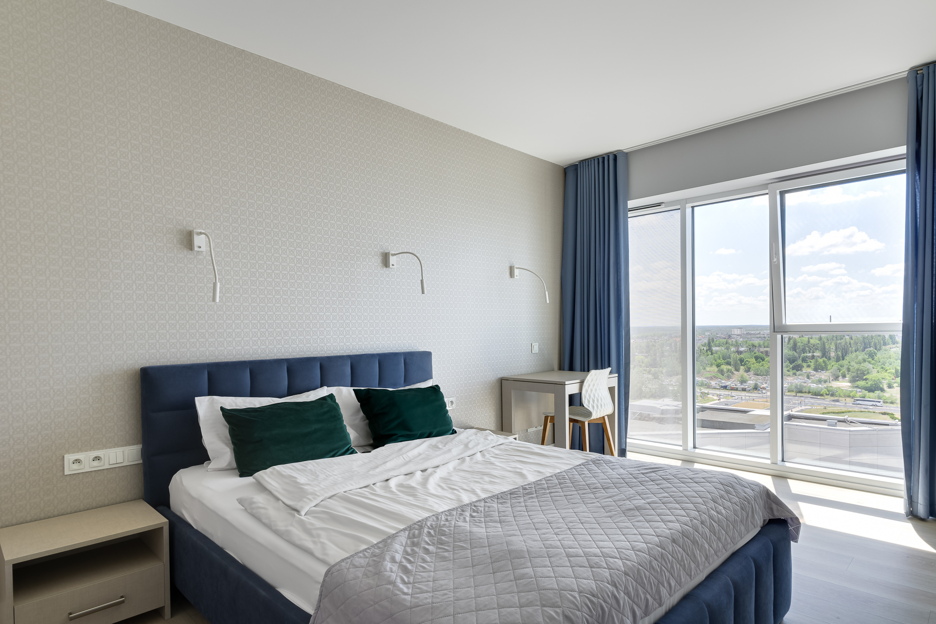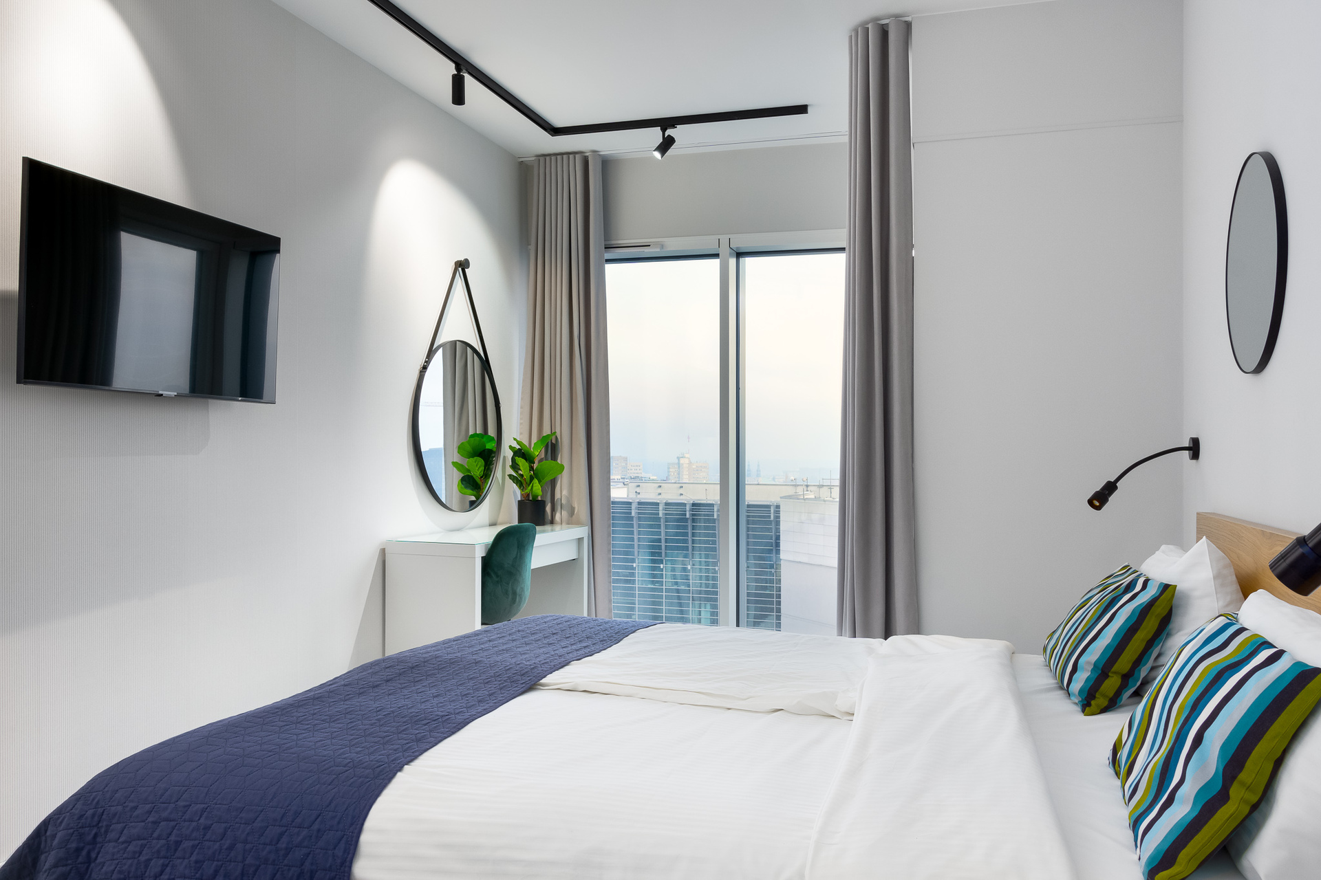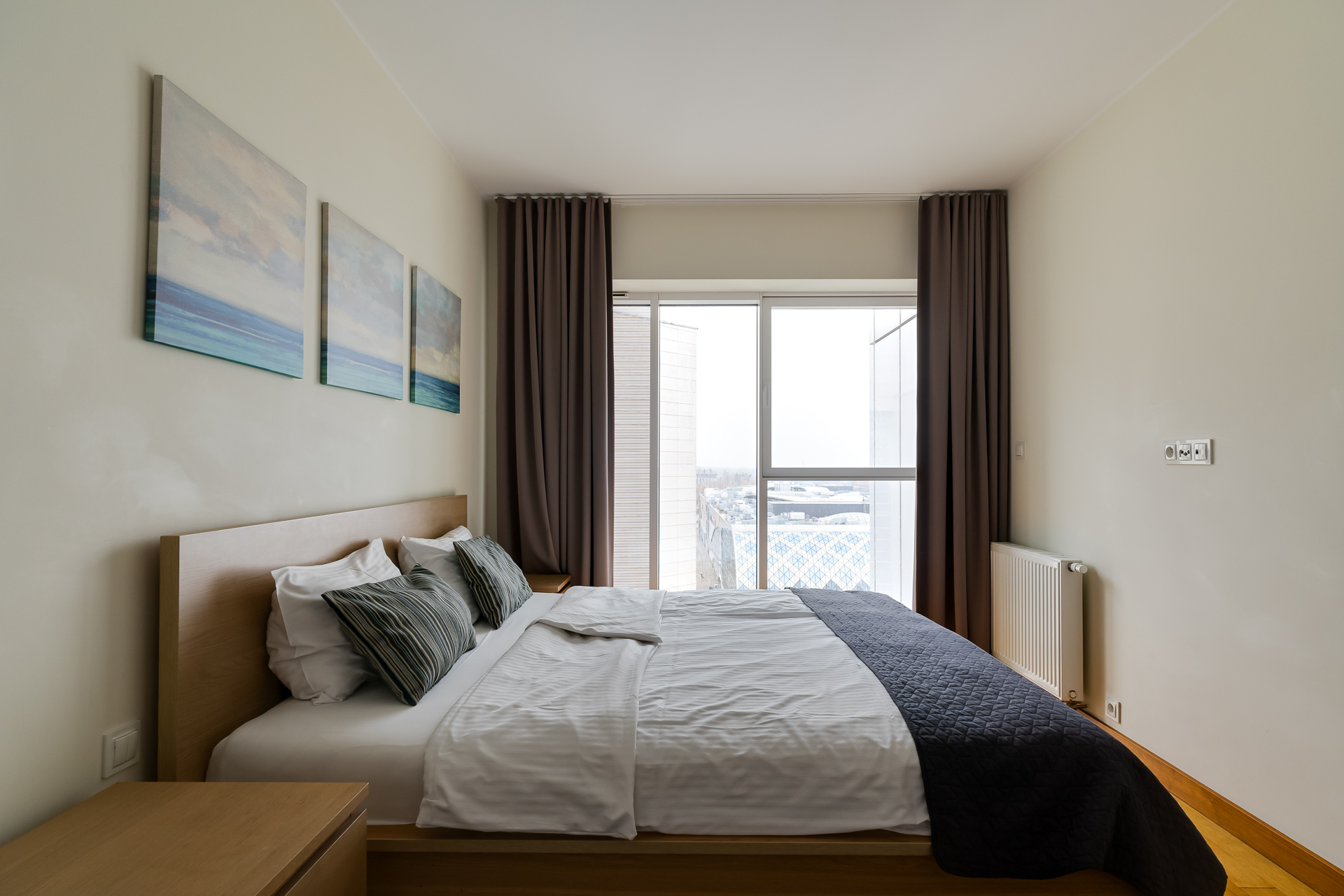 E - 1 BEDROOM view apartments (from 17th to 21st floor, without balcony, with air conditioning)