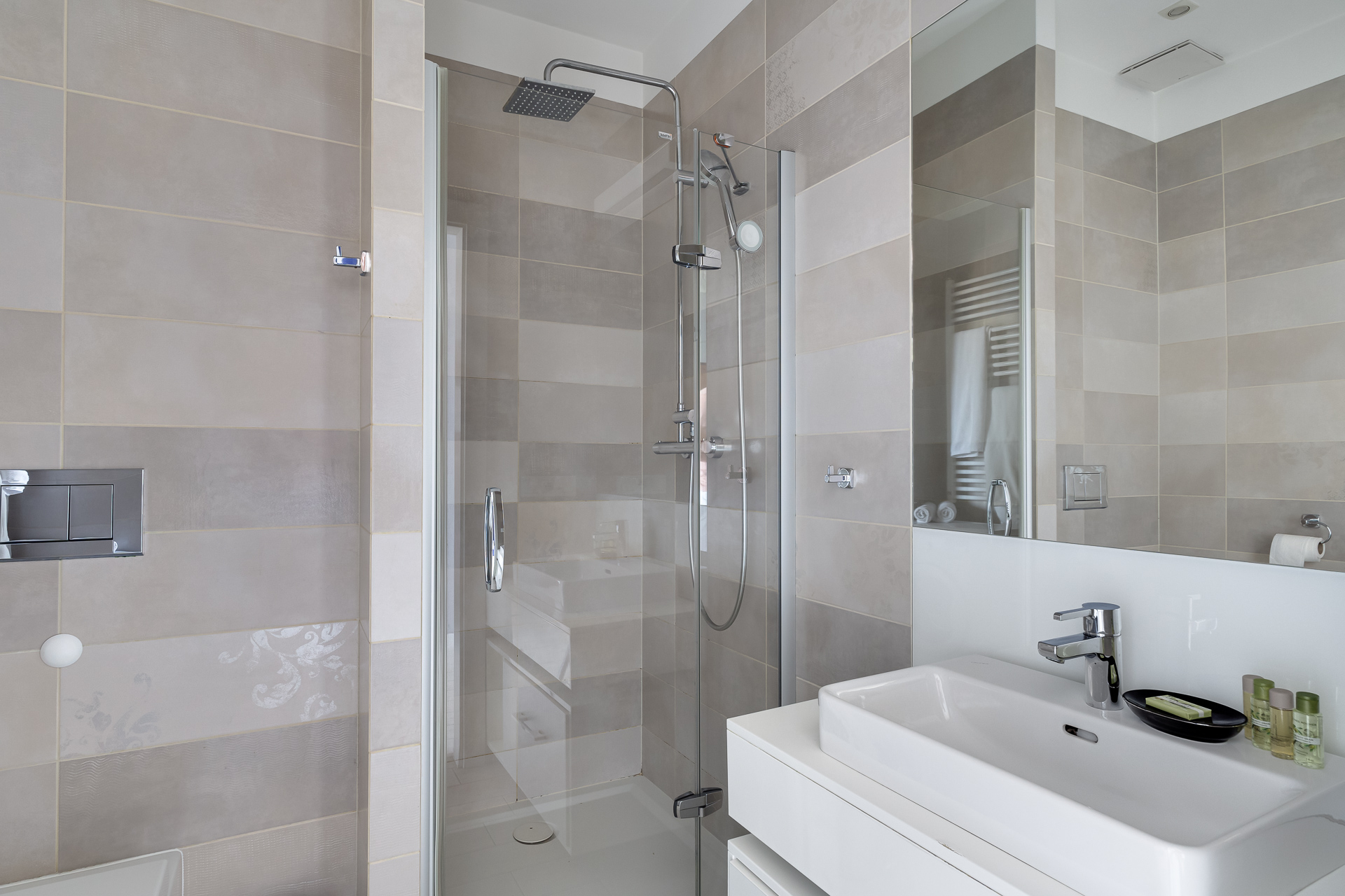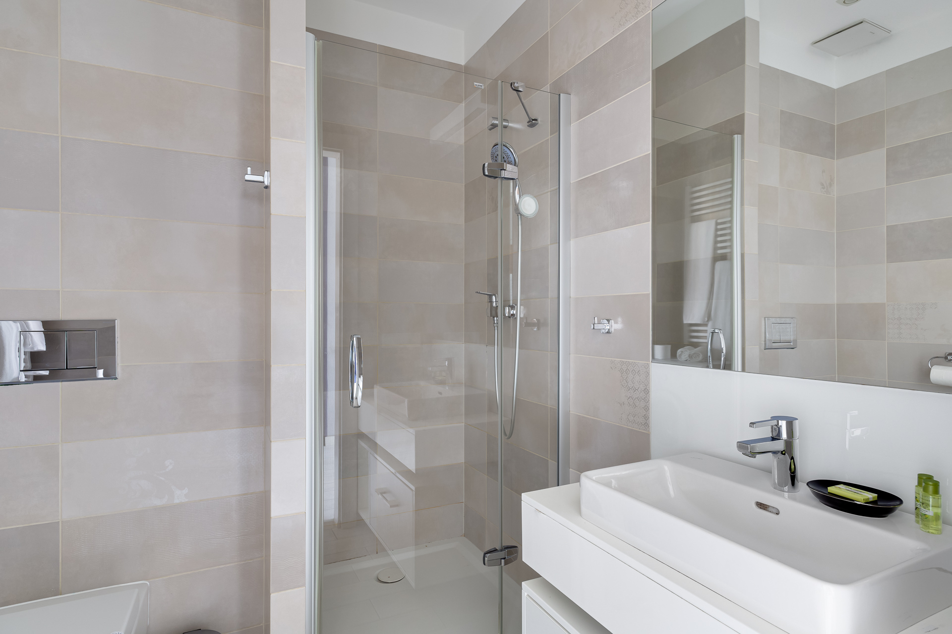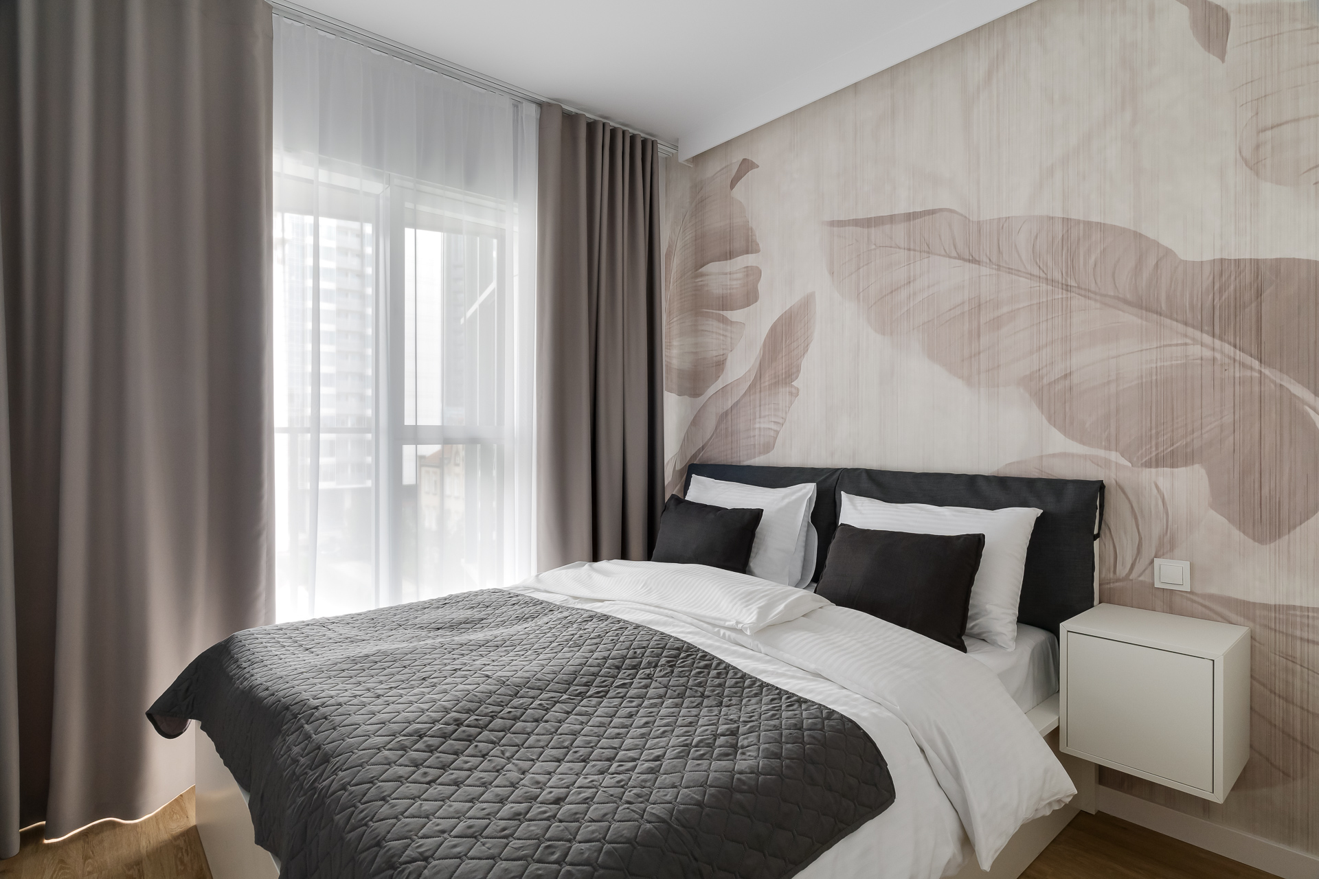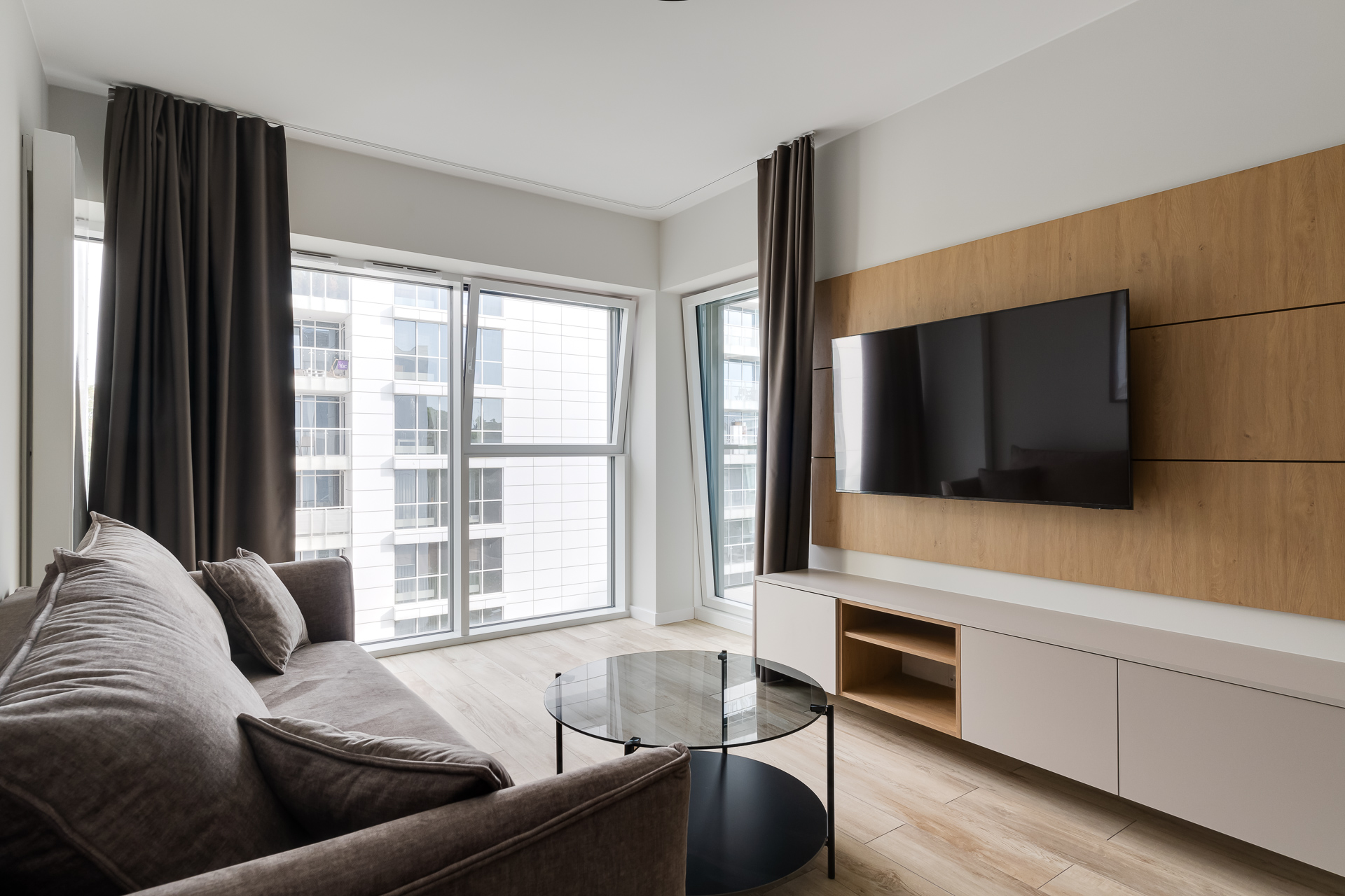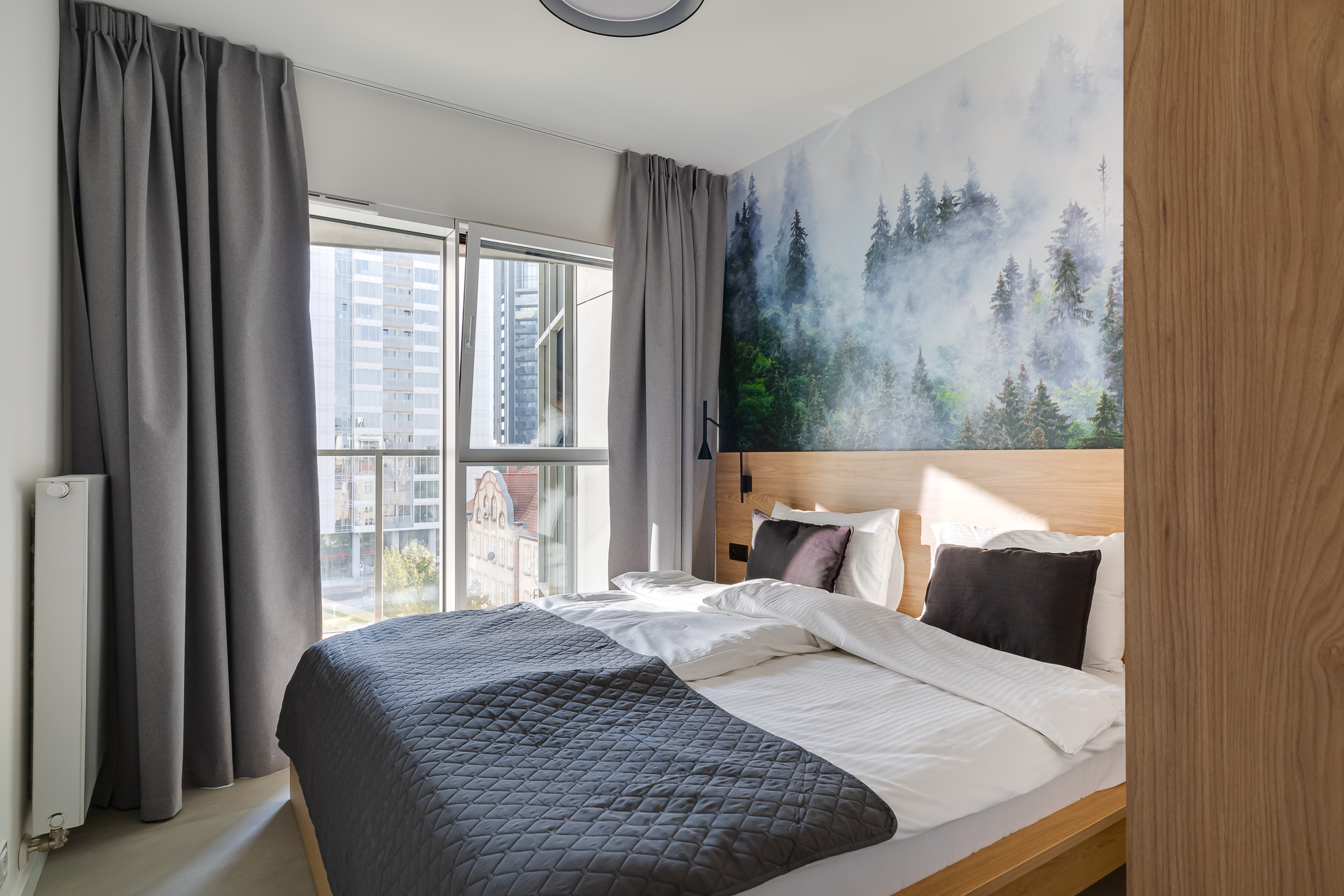 E - 1 BEDROOM view apartments (from 17th to 21st floor, without balcony, with air conditioning)